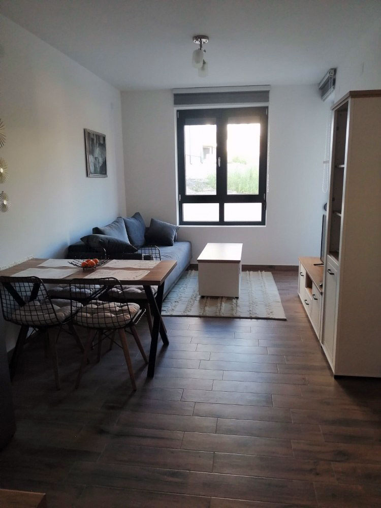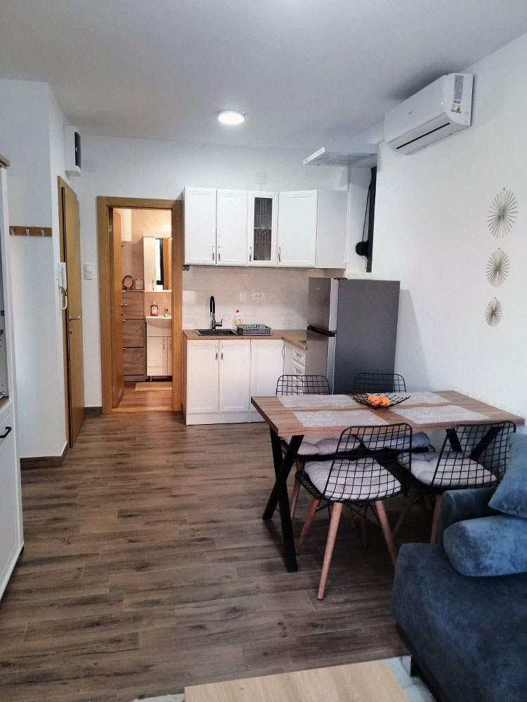 spavaća soba, dnevni boravak, kuhinja, kupatilo, klima, kablovska Tv, wi-fi internet, terasa i parking mesto.