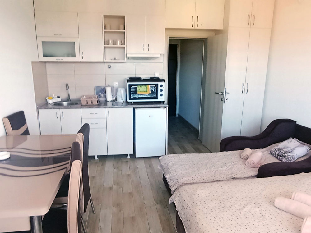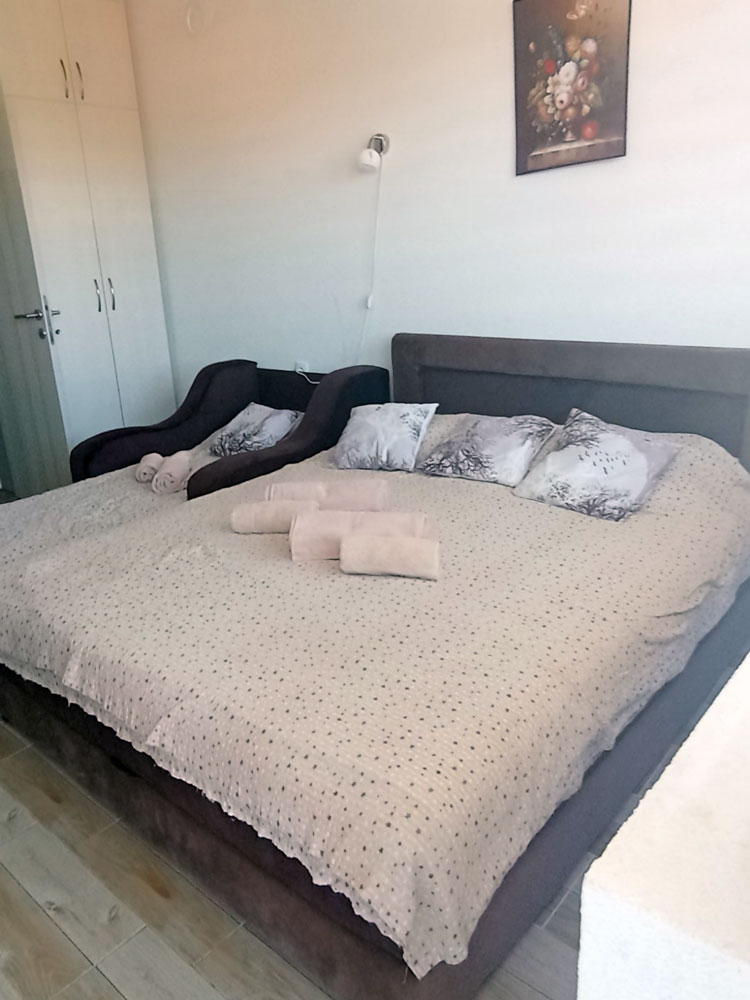 potpuno opremljena kuhinja, moderno kupatilo, udoban francuski ležaj, fotelja na rasklapanje, prostrana terasa i obezbeđen parking za automobil.