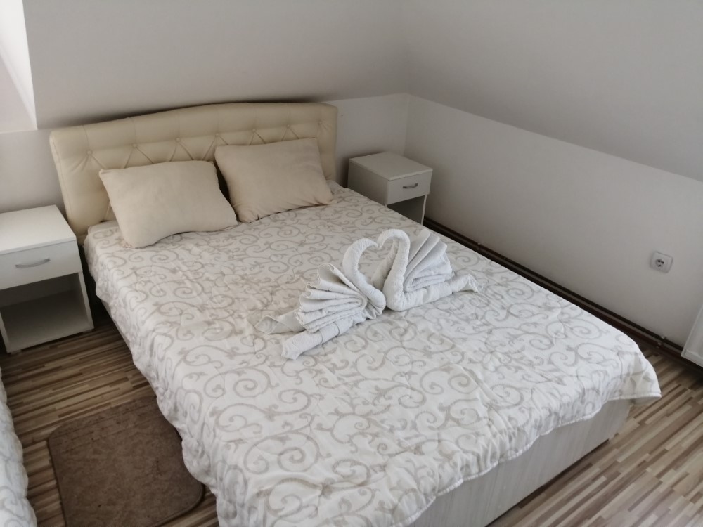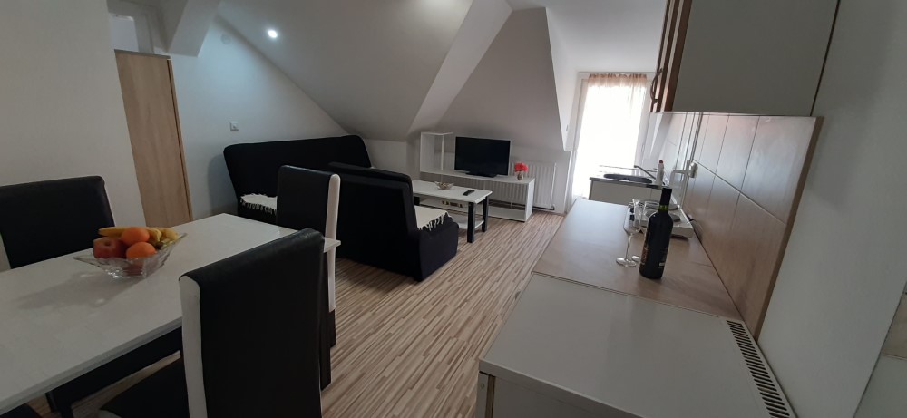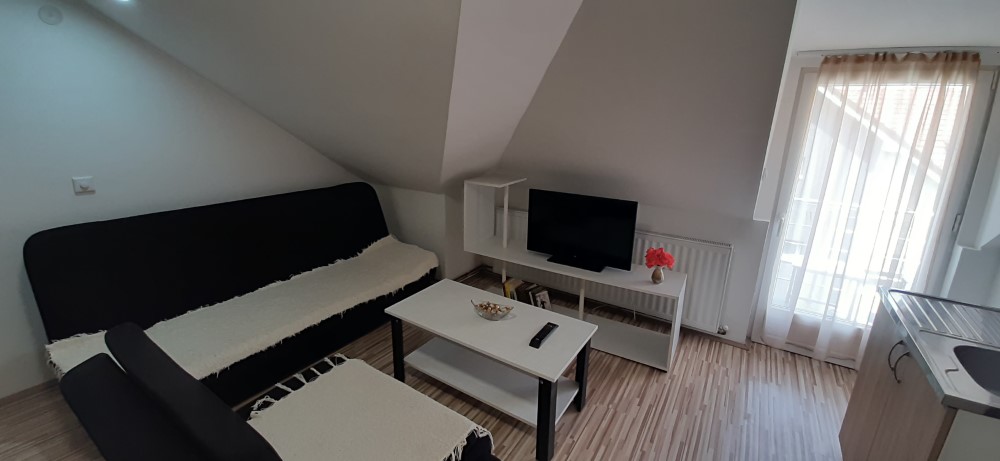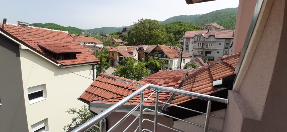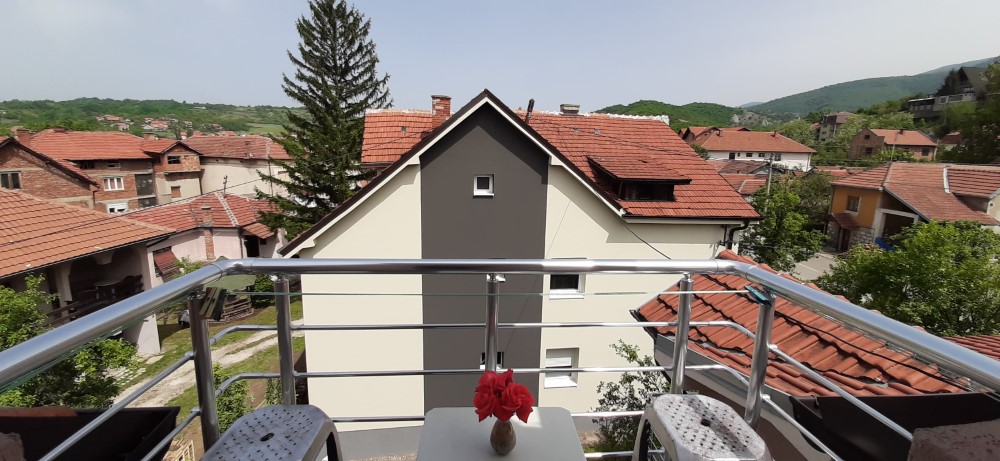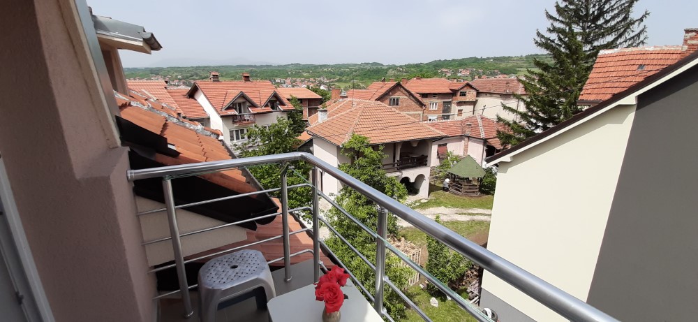 Kuhinja: Kuhinjski pribor, Čaše i tanjiri, Rešo, Frižider • Kupatilo: Peškiri, Fen za kosu, Tuš kabina • Spavaća soba: Posteljina, Garderobni orman • Dnevna soba: Ravan TV, Internet, Ventilator • Pogledi: Pogled na dvorište, Pogled na grad, Pogled na baštu, Pogled na planinu, Pogled na ulicu • Ostalo: Terasa