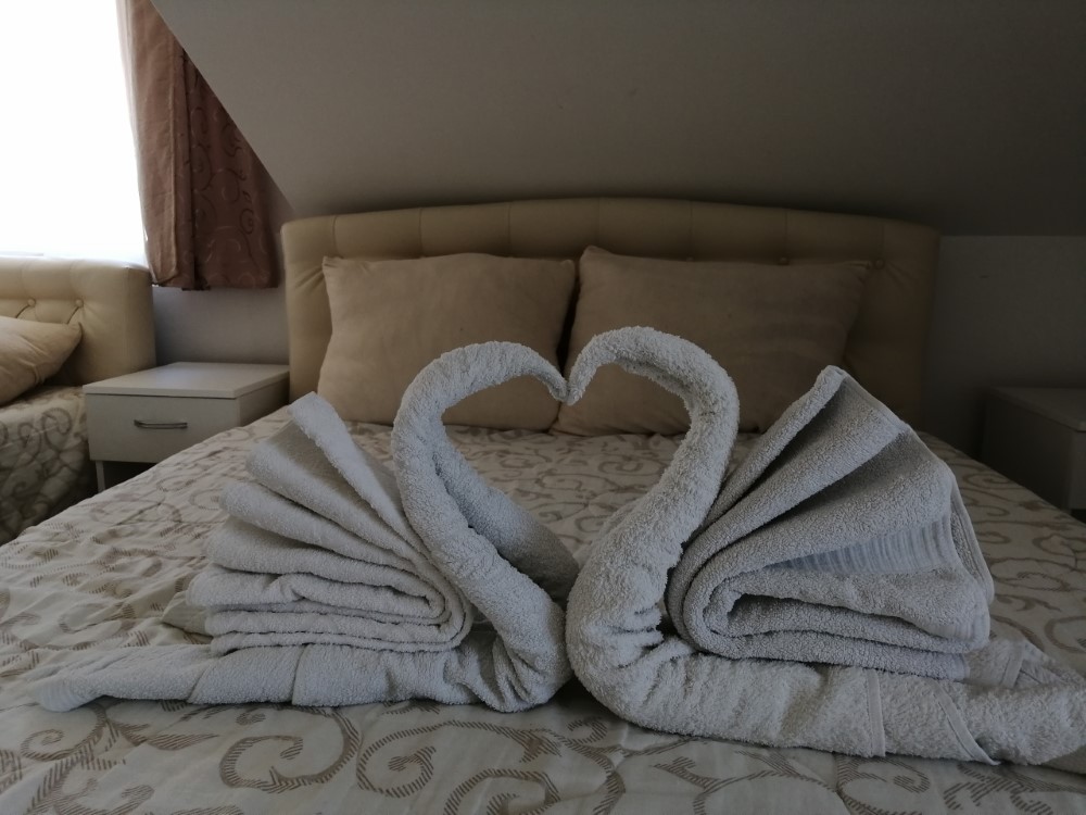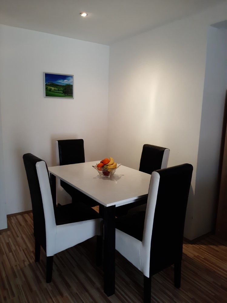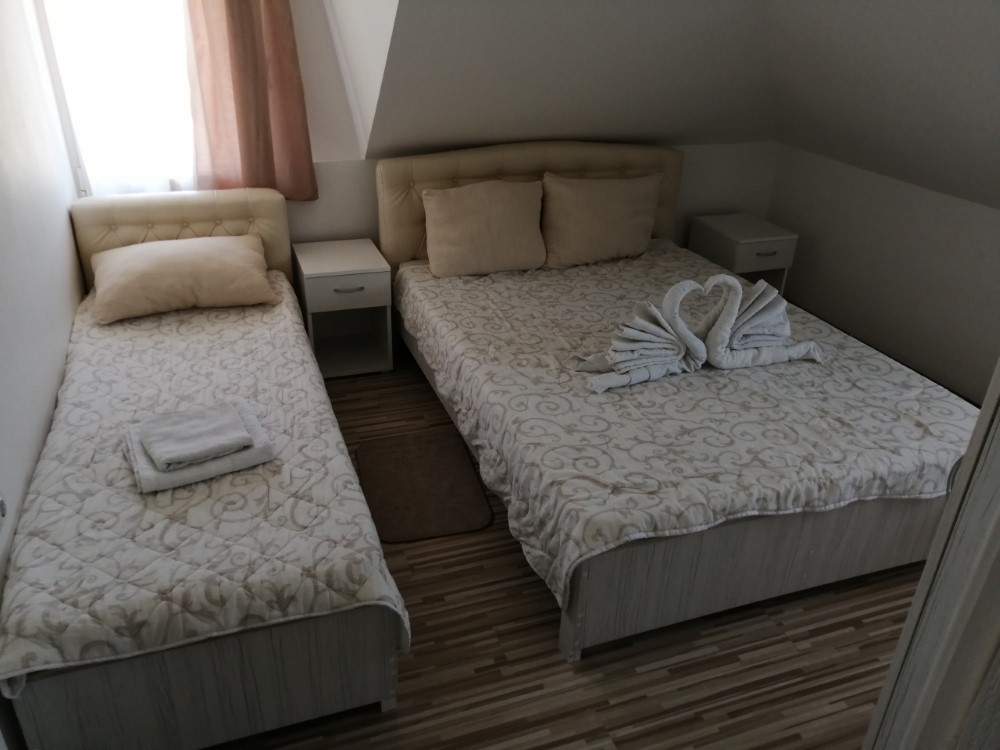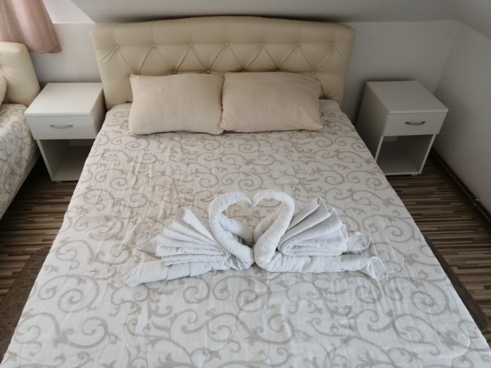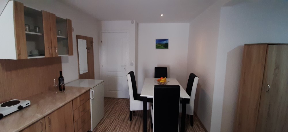 Kuhinja: Kuhinjski pribor, Čaše i tanjiri, Rešo, Frižider • Kupatilo: Peškiri, Fen za kosu, Tuš kabina • Spavaća soba: Posteljina, Garderobni orman • Dnevna soba: Ravan TV, Internet, Ventilator • Pogledi: Pogled na dvorište, Pogled na grad, Pogled na baštu, Pogled na planinu, Pogled na ulicu • Ostalo: Terasa