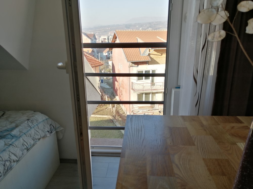Kuhinja: Kuhinjski pribor, Čaše i tanjiri, Rešo, Frižider • Kupatilo: Peškiri, Tuš kabina • Spavaća soba: Posteljina, Garderobni orman • Dnevna soba: Ravan TV, Internet • Pogledi: Pogled na dvorište, Pogled na grad, Pogled na baštu, Pogled na planinu • Ostalo: Balkon
