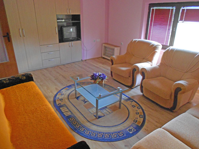 Apartman Maka 1 se nalazi na prvo spratu i spada u porodične apartmane. Pogodan je za porodicu koja voli komfor odmor u tišini blizu akva parka.