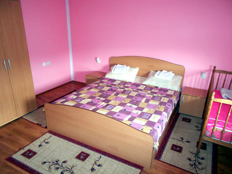 spavaća soba sa francuskim ležajem, krevetac za bebe, dnevni boravak, kablovska TV, wi-fi internet, kupatilo, kuhinja sa trpezarijom, terasa i parking.