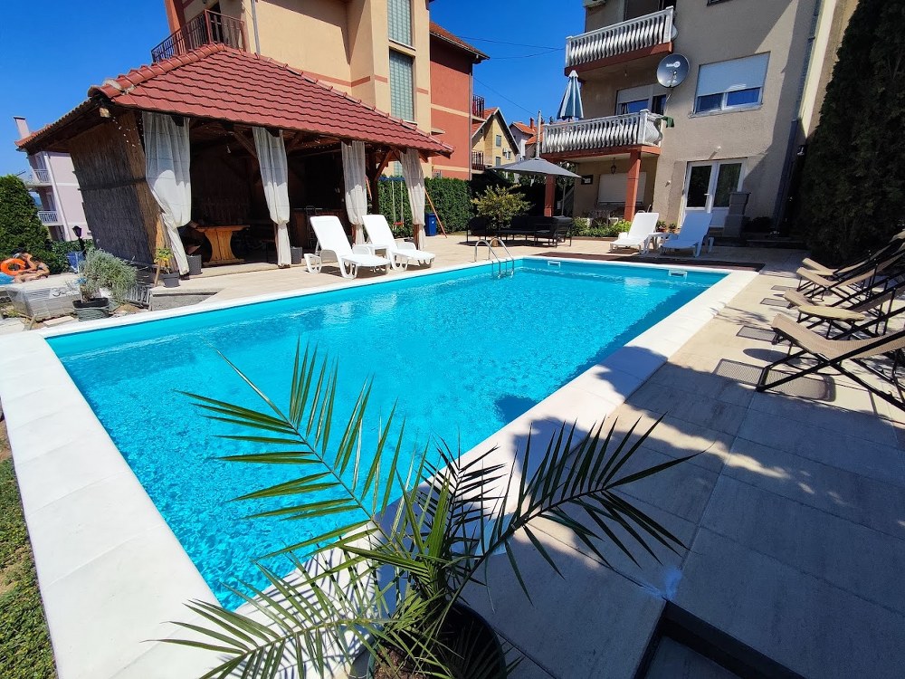 **Apartmani Matiks** se izdvajaju po velikom, blistavom bazenu u sklopu objekta, savršenom za opuštanje i osveženje naših gostiju. Osim toga, nudimo besplatan parking, prostrano dvorište sa