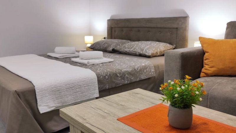Studio Mira 1 se nalazi na prvom spratu i pogodan je za boravak od 2-4 osobe.