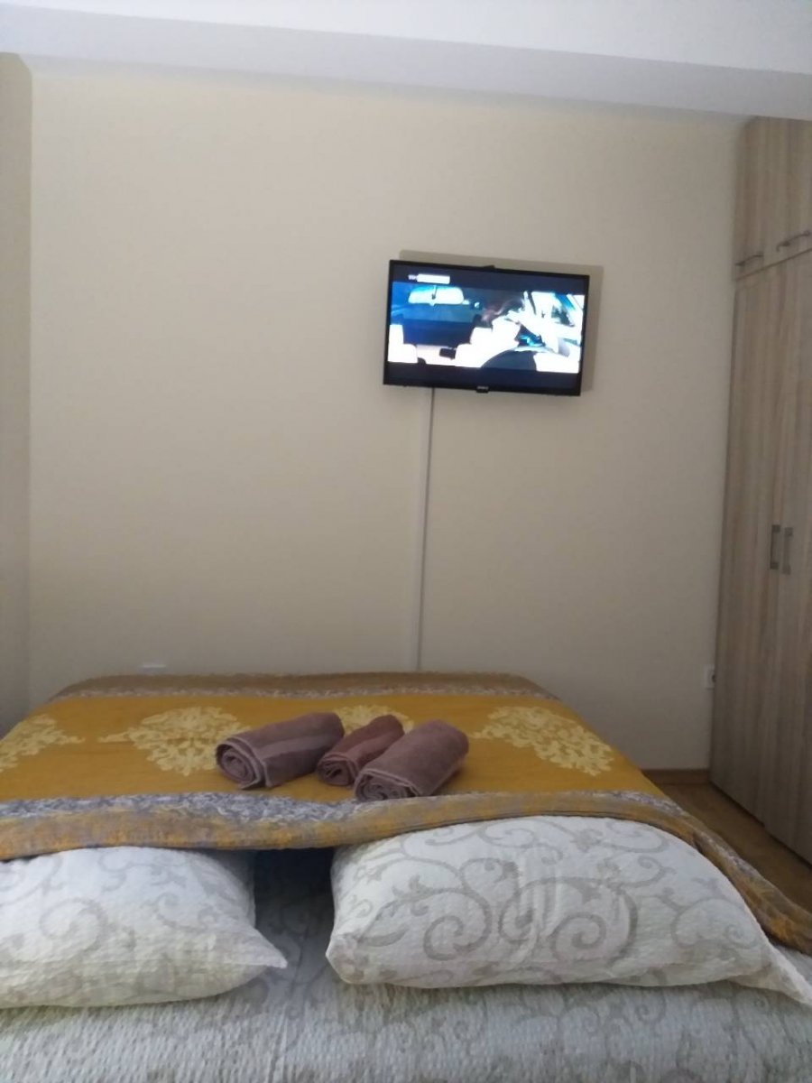 Kuhinja: Kuhinjski pribor, Čaše i tanjiri, Frižider • Kupatilo: Peškiri, Tuš kabina • Spavaća soba: Posteljina, Garderobni orman, Pegla • Dnevna soba: Ravan TV, Internet • Pogledi: Pogled na ulicu • Ostalo: Terasa