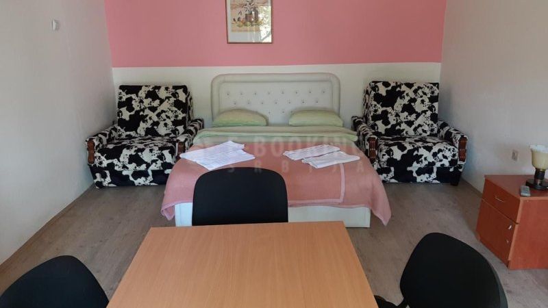 ..Apartmani su kategorisani najvećom ocenom**I ***.kablovska televizija i bežicni internet wifi ..Novo u našoj ponudi su porodični studiski apartmani za 2,3 I 4 (francuski lezaj i pomoćni ležaj, kablovska televizija i bežični internet wifi ) svaki apartman imaju svoju terasu (sa garniturom za sedenje) Ispred kuće obezbeđen privatni parking samo za naše goste .Cena po dogovoru i zavisi od broja gostiju i broja noćenja!