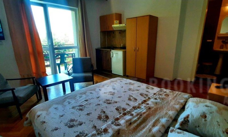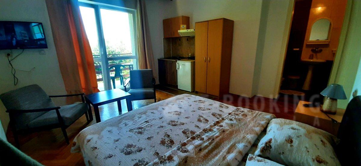 Kuhinja: Kuhinjski pribor, Čaše i tanjiri, Rešo, Mikrotalasna peć, Frižider • Kupatilo: Peškiri, Tuš kabina • Spavaća soba: Posteljina, Garderobni orman, Pegla, Daska za peglanje • Dnevna soba: Ravan TV, Internet • Pogledi: Pogled na dvorište, Pogled na grad, Pogled na baštu • Ostalo: Terasa, Klima uredjaj