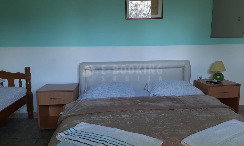 Kuhinja: Kuhinjski pribor, Čaše i tanjiri, Rešo, Mikrotalasna peć, Frižider • Kupatilo: Peškiri, Tuš kabina • Spavaća soba: Posteljina, Garderobni orman • Dnevna soba: Ravan TV, Internet • Pogledi: Pogled na dvorište, Pogled na baštu • Ostalo: Terasa, Klima uredjaj