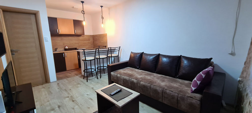Klima, spavaća soba sa francuskim ležajem||dnevni boravak sa garniturom na rasklapanje||kablovska TV||wi-fi internetom||kuhinja sa trpezarijom||kupatilo||terasa||parking za automobil