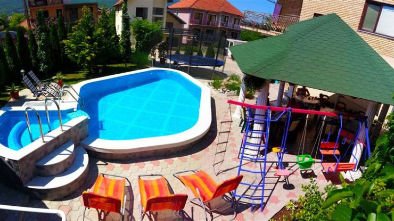 ..bazen sa đakuzuijem, klima, centralno grejanje, video-bim u dvoristu, kombinovane ljuljaske za decu¸trambolina (3.66m),stoni fudbal, frikom sladoled, wireless internet, KaTV , prostrano dvoriste, rostilj mesto, kotlic, pecenjara, parking, pegla, fen za kosu, dupli peskiri...