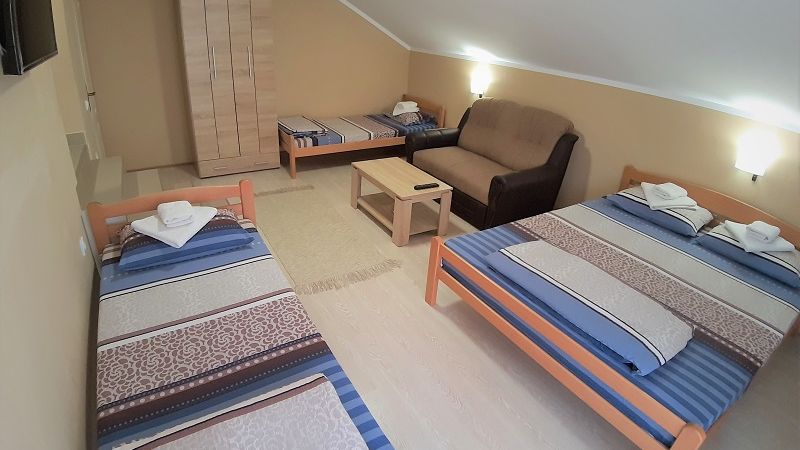 Broj lezajeva: 2 (kauci na rasklapanje) Velicina: 20m2 Dvokrevetni apartman CASPER se nalazi u prizemlju porodicne kuce Nikolic. Poseduje sobu sa dva lezaja(u pitanju su kauci na rasklapanje,