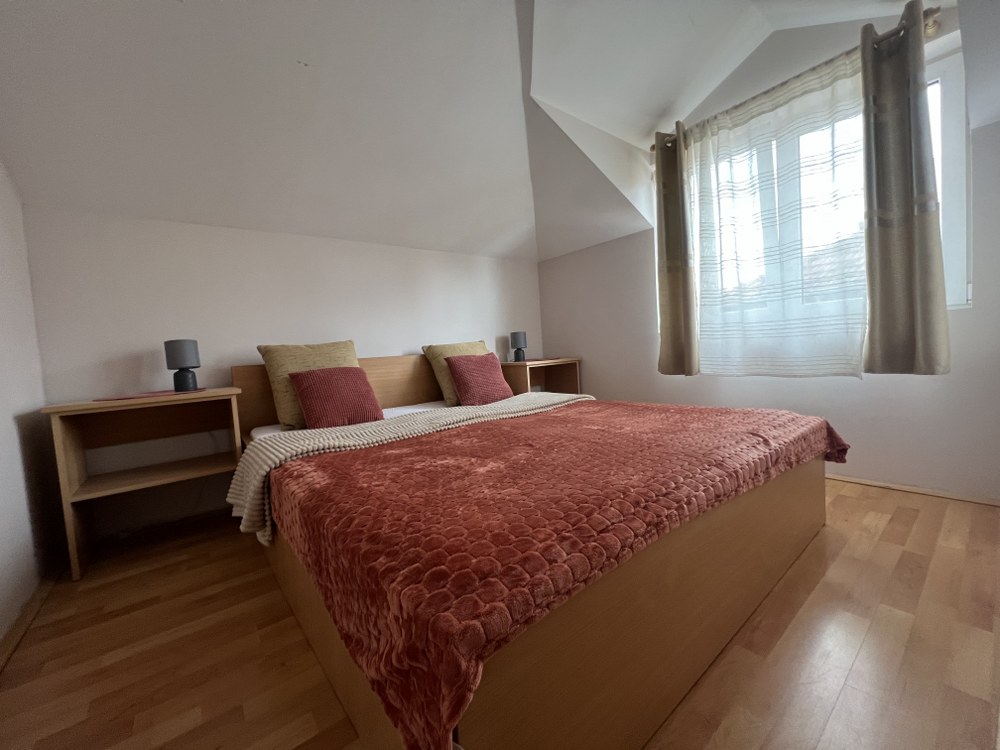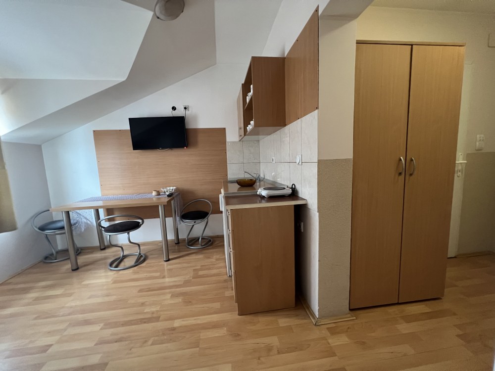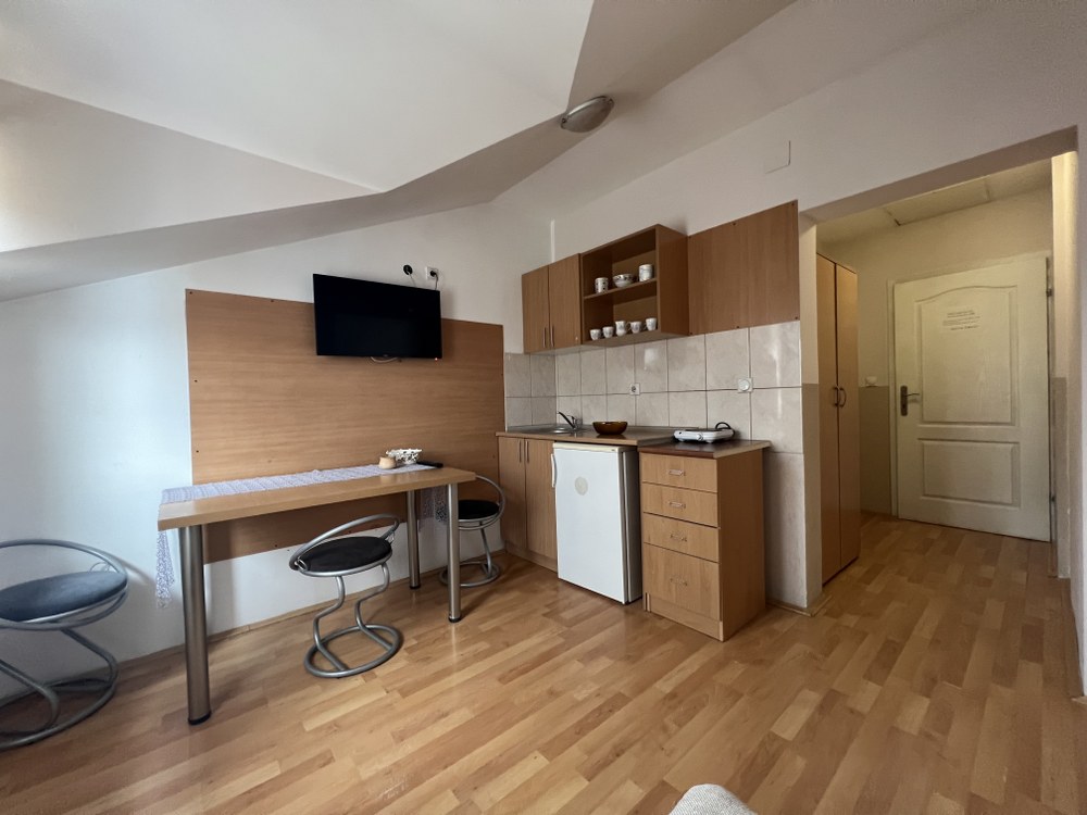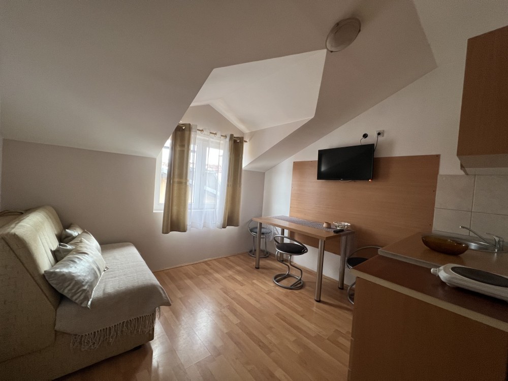 zasebnu spavaću sobu, dvevni boravak u kome je postavljen dvosed na razvačenje, kuhinju sa trpezarijom i kupatilo. Poseduje KTV i parking obezbedjen u dvorištu.