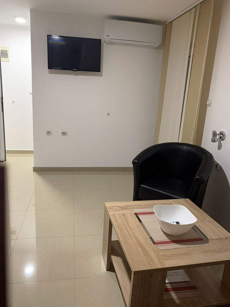 2 spavaće u jednoj francuki ležaj, u drugoj mali krevet za bebe mogućnost promene, dnevni boravak sa sofom na razvlačenje, kablovska TV, wi-fi, kuhinja, terasa, hodnik, kupatilo, sef, parking