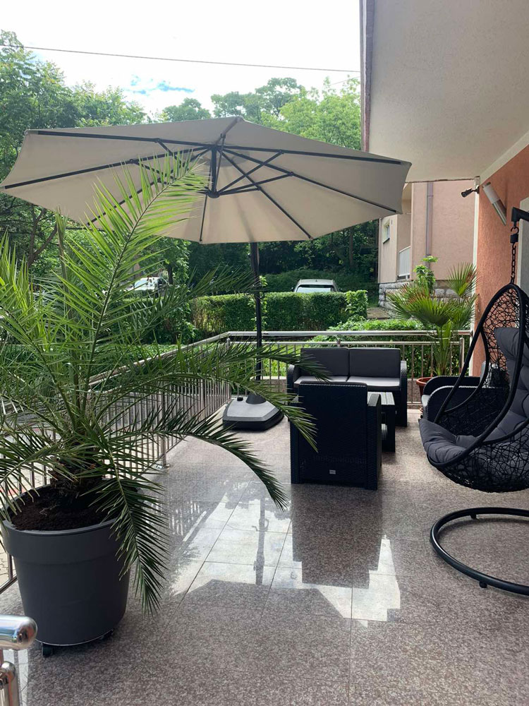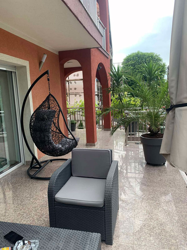 Apartman 4 je pogodan za porodicu sa više članova ili za dve porodice jer apartman ima dve spavaće sobe.petokreveni ili sestokrevetni, 2 spavace u jednoj francuki u drugoj mali krevet za bebe mogucnost promene, dnevni boravak na razvlacenje, kuhinja,terasa, hodnik, kupatilo, sef