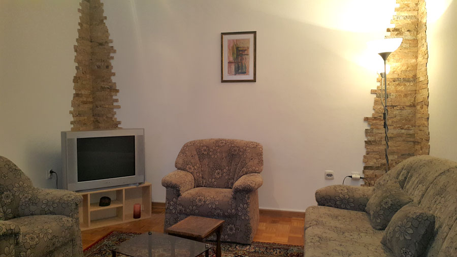 dnevni boravak, komplet opremljena kuhinja sa trpezarijom, dve spavaće sobe, kablovska TV, lodja, terasa, WI-FI internet i parking mesto