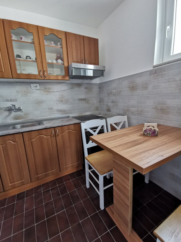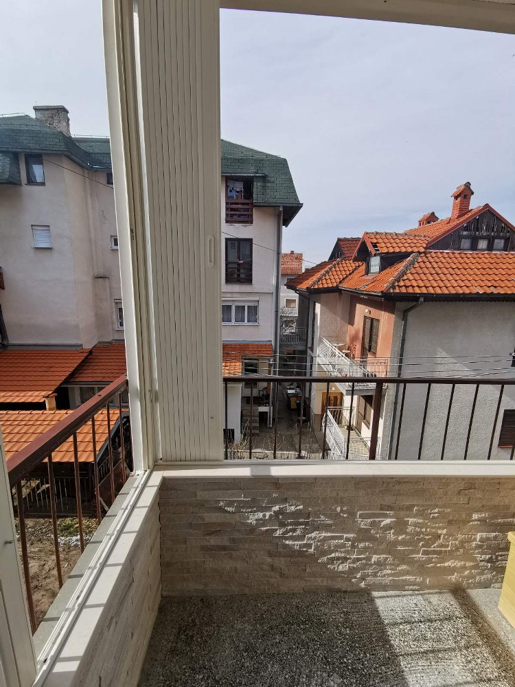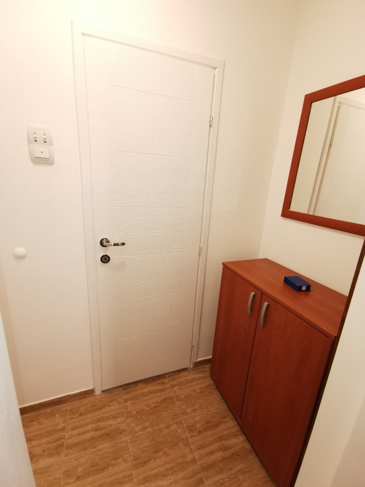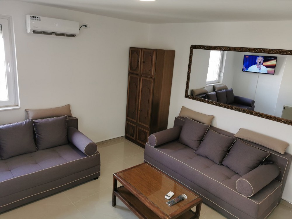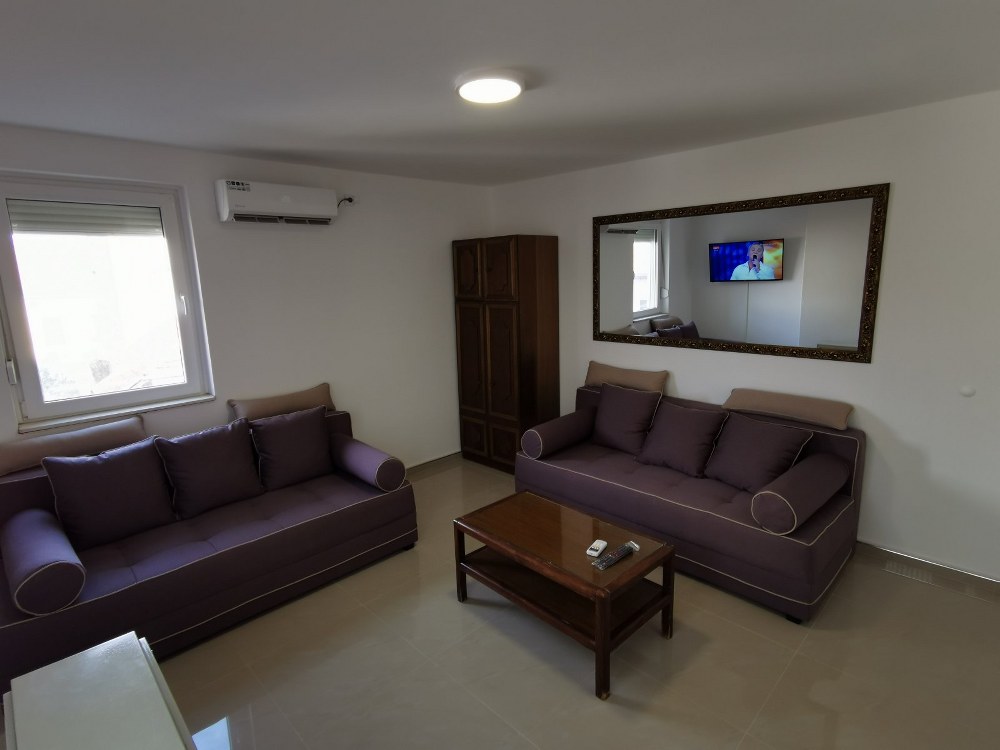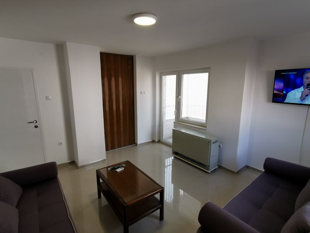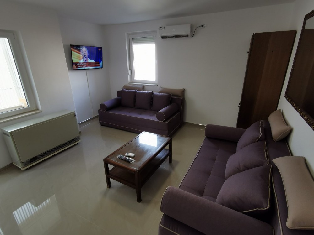 dnevnu sobu sa LCD TV, internetom, klimom, odvojenu kompletno opremljenu kuhinju, kupatilo sa veš mašinom, hodnik i terasu. Apartman ima peglu, fen, peškire, posteljinu. Obezbedjen parking