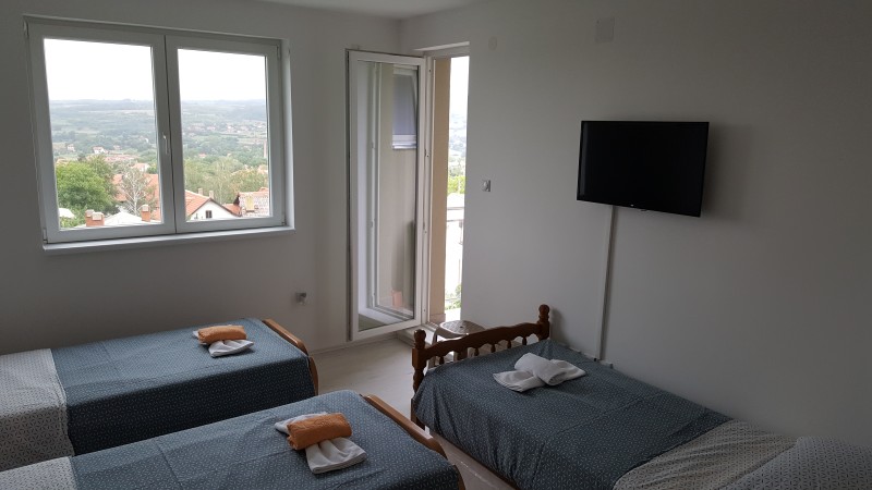 tri kreveta samca sa mogucnoscu spajanja dva kreveta u celinu, komplet opremljenu kuhinju i kupatilo kao i terasu sa prelepim pogledom na panoramu Sokobanje i planinu Rtanj.