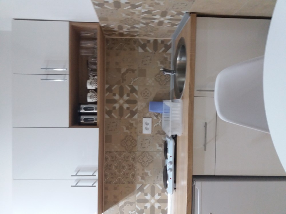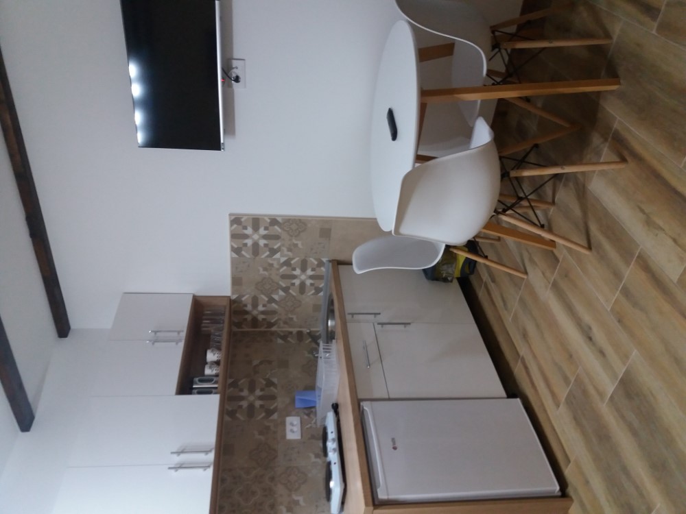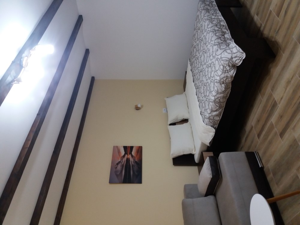 Kuhinja: Kuhinjski pribor, Frižider • Kupatilo: Peškiri, Fen za kosu, Tuš kabina • Spavaća soba: Posteljina, Garderobni orman • Dnevna soba: Ravan TV, Internet • Pogledi: Pogled na dvorište, Pogled na ulicu • Ostalo: Terasa, Parking