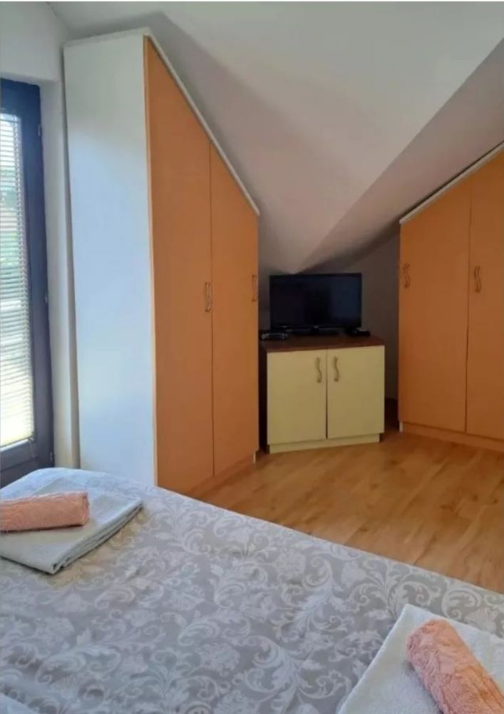 Apartman Jevtić smešten je na drugom spratu i idealan je za ugodan boravak do 5 osoba. Ovaj prostrani i funkcionalno opremljen apartman sadrži sve što je potrebno za prijatan i komforan boravak. Poseduje modernu kuhinju sa kompletnim uređajima za pripremu obroka, elegantnu trpezariju za uživanje u zajedničkim obrocima, i luksuzno opremljeno kupatilo sa svim neophodnim elementima.