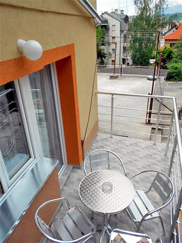 bračni krevet, običan ležaj, kuhinja, kupatilo, kablovska tv, wireless internet, terasa i parking.