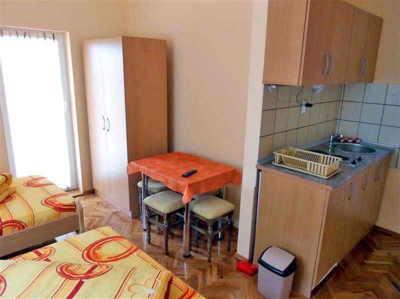 Studio Maja 4 se nalazi na prvom sprati vile i pogodan je za tri odrasle osobe ili porodicu sa malom decom.