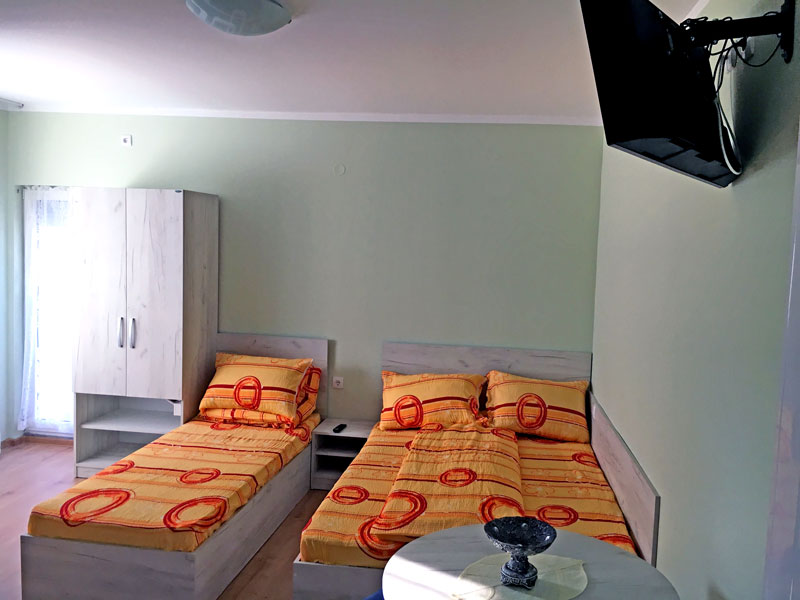 francuski ležaj, singl ležaj, kuhinja, kupatilo, kablovska TV, wi-fi internet, terasa i parking