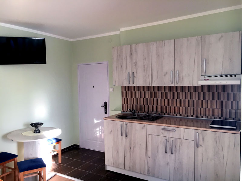 Studio Maja 8 se nalazi na drugom spratu i pogodan je za tri odrasle osobe ili porodicu sa malom decom.